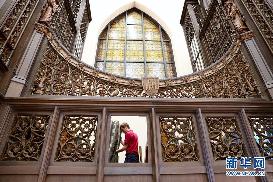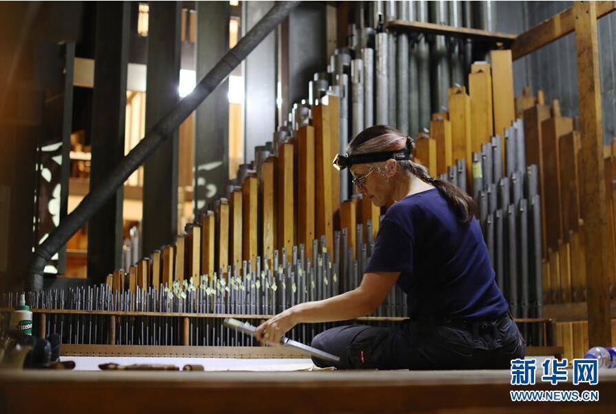 德國管風(fēng)琴修理師弗朗茨·羅思在進(jìn)行卡薩翁內(nèi)部維修工作(10月23日攝)。 100年前,它誕生在美國波士頓,轟動(dòng)一時(shí),成為北美四大名琴之一。然而,歷史的變遷中,它一度傷痕累累,無法再發(fā)聲。新華社記者 姜克紅攝