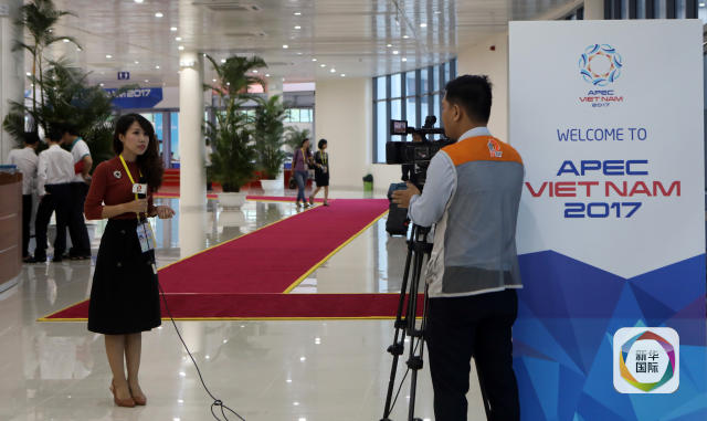 11月5日,在越南峴港,媒體記者在亞太經(jīng)合組織領(lǐng)導(dǎo)人會(huì)議周?chē)?guó)際媒體中心進(jìn)行報(bào)道。新華社記者李鵬攝