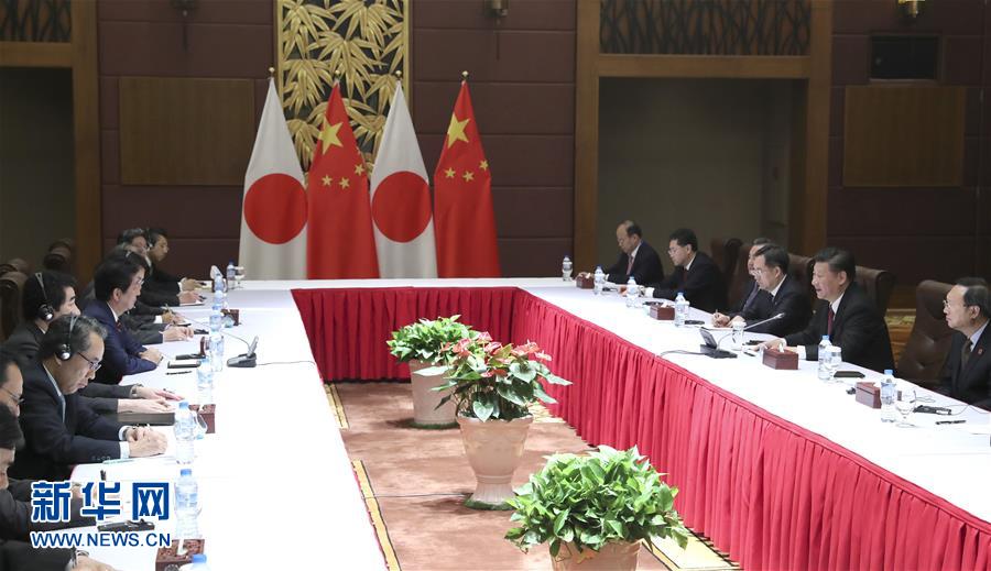 ? ?11月11日,國家主席習近平在越南峴港會見日本首相安倍晉三。新華社記者 馬占成 攝