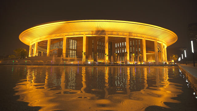 河內(nèi)西南部開發(fā)區(qū)黎光道188號,中方援建的越中友誼宮坐落于此。這座建筑呈現(xiàn)蓮花造型,外部四角布有水池,營造出一種出水芙蓉的意境。白色的立柱環(huán)抱著柚木色的主墻,典雅精致。外圓而內(nèi)方的設(shè)計,象征和諧、團結(jié)與圓滿,傳遞中越友誼長存、世代友好的深意。