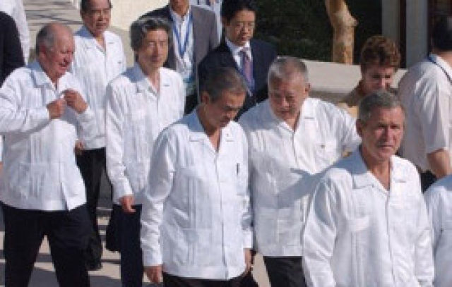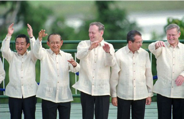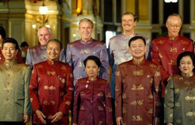 時任印尼總統(tǒng)蘇哈托贈送每位領導人一件巴提克——一種蠟染印花襯衣。
