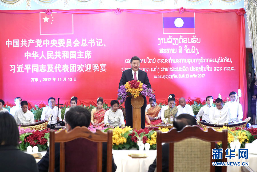 11月13日,中共中央總書記、國家主席習(xí)近平在萬象出席老撾人民革命黨中央委員會總書記、國家主席本揚(yáng)舉行的歡迎宴會。這是習(xí)近平在宴會上致辭。新華社記者 馬占成 攝