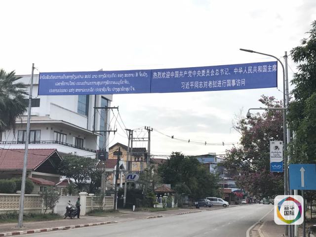 從機場行車前往萬象市區(qū),路邊不時看到中老兩國元首的大幅畫像。從機場到市區(qū)的路上,中老兩國國旗隨處可見,迎風(fēng)招展;萬象市區(qū)各個路口,樹立著醒目的歡迎標語。