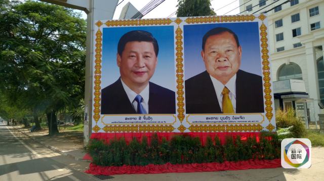 在老撾國家主席府正門,懸掛著習(xí)近平主席和老撾國家主席本揚的大幅畫像。乘車路過的老撾青年人朝在主席府外采訪的中國記者熱情打著招呼,歡笑聲灑了一路。