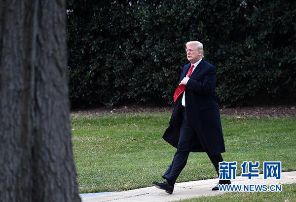 12月22日,在美國華盛頓白宮,美國總統(tǒng)特朗普簽署減稅法案后準(zhǔn)備乘直升機(jī)離開。 新華社記者殷博古攝