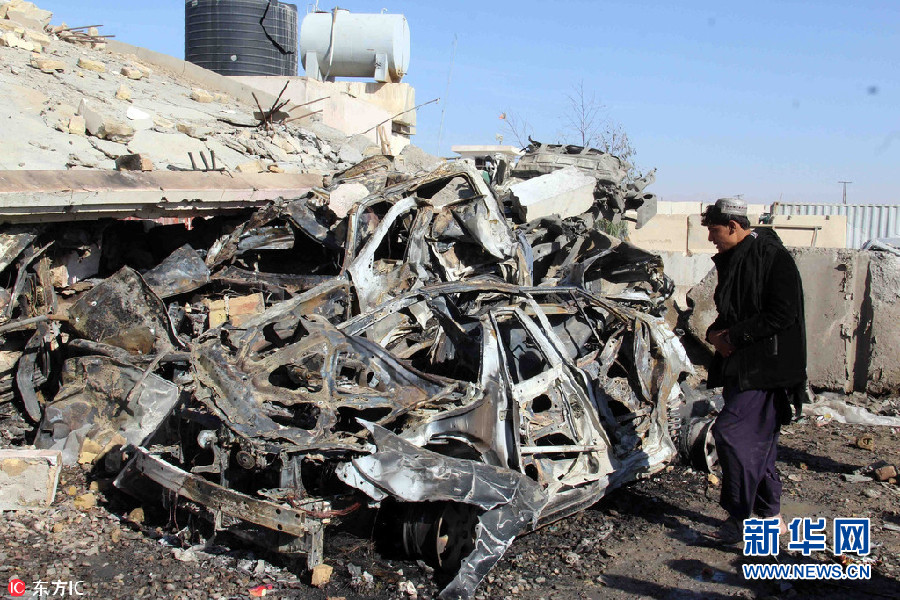 當(dāng)?shù)貢r間22日,阿富汗坎大哈,當(dāng)?shù)匾惶幘炜偛吭庥鲎詺⑹狡囌◤椧u擊,造成至少6名警察死亡,4人受傷。圖為阿富汗安全官員檢查現(xiàn)場。(圖片來源:東方IC)