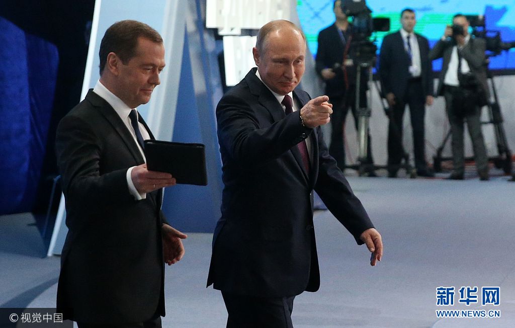當(dāng)?shù)貢r(shí)間2017年12月23日,俄羅斯莫斯科,俄羅斯總統(tǒng)普京出席第17次統(tǒng)一俄羅斯黨大會(huì)。(圖片來源:視覺中國)