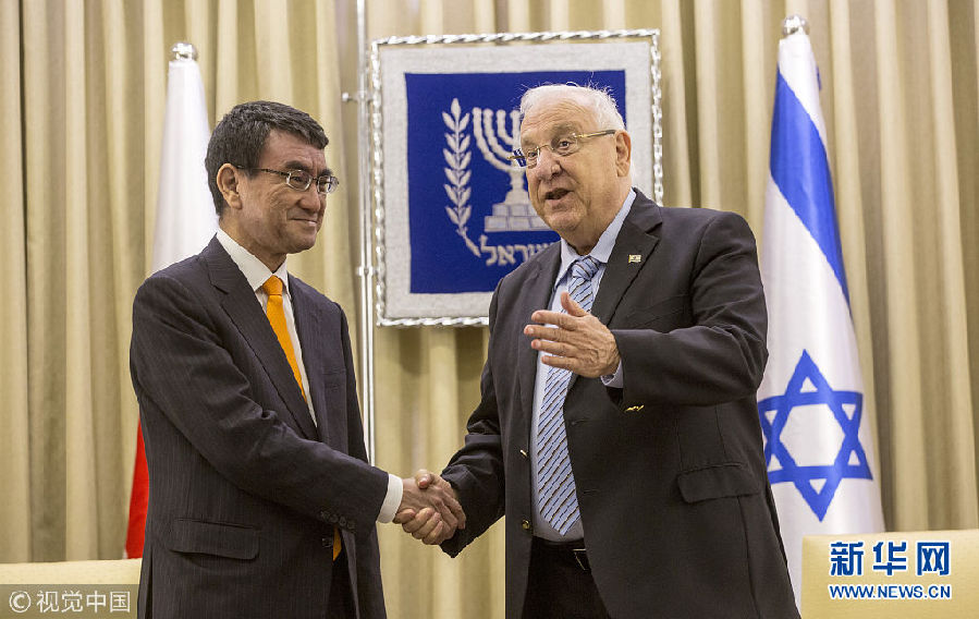 12月25日,耶路撒冷,日本外相河野太郎訪問耶路撒冷,與以色列總統(tǒng)魯文·里夫林會(huì)晤。(圖片來源:視覺中國(guó))