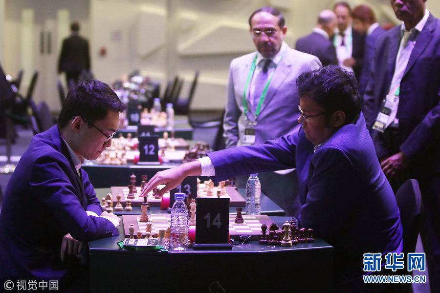 12月26日,沙特阿拉伯利雅得,世界快棋錦標(biāo)賽在當(dāng)?shù)嘏e行。國(guó)際象棋聯(lián)合會(huì)24日說(shuō),7名以色列選手因簽證申請(qǐng)?jiān)馍程匕⒗芙^無(wú)緣參賽。(圖片來(lái)源:視覺(jué)中國(guó))