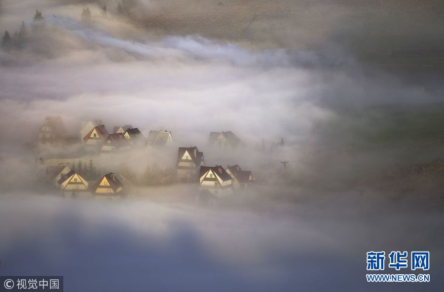 1月10日訊(具體拍攝時(shí)間不詳),波蘭皮耶尼內(nèi)山脈的一個(gè)村莊被濃霧籠罩,攝影師站在對(duì)面山上拍攝的景觀如童話世界一般,色彩繽紛的房子在濃霧中若隱若現(xiàn)仿若仙境。(圖片來(lái)源:視覺(jué)中國(guó))