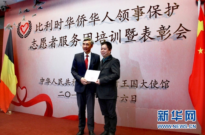 新華網布魯塞爾1月16日專電(記者潘革平)中國駐比利時大使館16日在布魯塞爾舉行隆重表彰儀式,對多年來在領事保護領域表現突出的21名領保志愿者予以表彰,其中包括由比利時中餐業(yè)聯(lián)合會會長楊丐鏡牽頭、去年9月協(xié)助大使館成功解決300多名中國游客因航空公司突然倒閉而滯留比利時列日機場問題的12名志愿者。