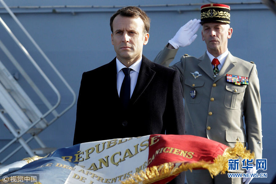 1月19日,法國土倫,法國總統(tǒng)馬克龍視察了當?shù)氐暮\娀夭⑾蚴勘鴤儼l(fā)表新年祝福。(圖片來源:視覺中國)