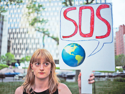 美國總統(tǒng)特朗普去年宣布美國退出應(yīng)對全球氣候變化的《巴黎協(xié)定》。圖為在美國紐約,一名女子手持標(biāo)語參加活動,抗議特朗普的決定。 新華社發(fā)