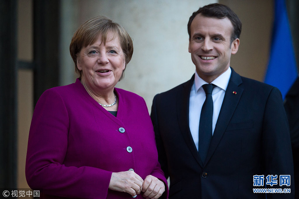當?shù)貢r間2018年1月19日,法國巴黎,法國總統(tǒng)馬克龍在愛麗舍宮會晤到訪的德國總理默克爾,表示在推動歐洲改革的進程中,法國需要德國。馬克龍以此對面臨大選后組閣危機的默克爾表達支持。馬克龍在會后強調(diào)了法德合作的重要性。他表示,法國無法單獨實現(xiàn)自身的抱負,需要與德國的抱負結(jié)合起來。