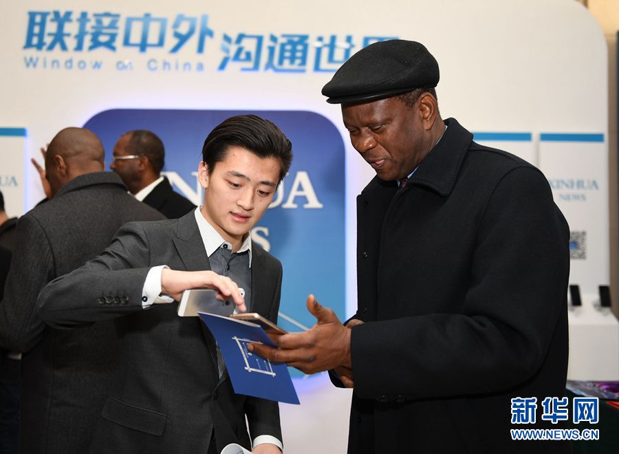 1月23日上午10:00,新華社英文客戶端上線發(fā)布會在總社大廈多功能廳舉行。圖為工作人員向嘉賓介紹新華社英文客戶端。新華社記者 李賀攝