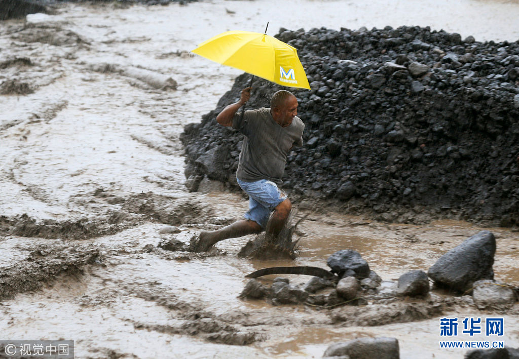 當(dāng)?shù)貢r(shí)間2018年1月27日,菲律賓阿爾拜省,民眾穿過混合著火山灰的泥漿河。(圖片來源:視覺中國)