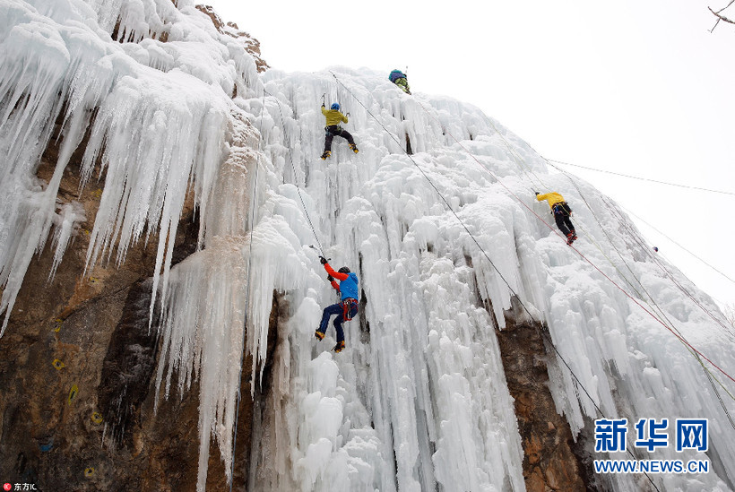 當?shù)貢r間1月26日,伊朗Meygun,攀巖愛好者在Meygun冰上攀巖俱樂部挑戰(zhàn)冰瀑攀巖。據(jù)悉,Meygun冰上攀巖俱樂部每年都會迎來數(shù)千專業(yè)攀巖人士以及學生。(圖片來源:東方IC)