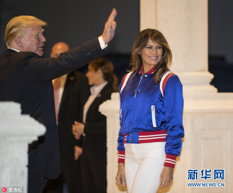當(dāng)?shù)貢r間2018年2月4日,美國佛州西棕櫚灘,美國總統(tǒng)特朗普與第一夫人梅拉尼婭在高爾夫俱樂部觀看大學(xué)生樂隊的歡迎演出,與美女啦啦隊員握手。據(jù)悉,特朗普夫婦出席在該俱樂部舉辦的超級碗派對。(圖片來源:東方IC)