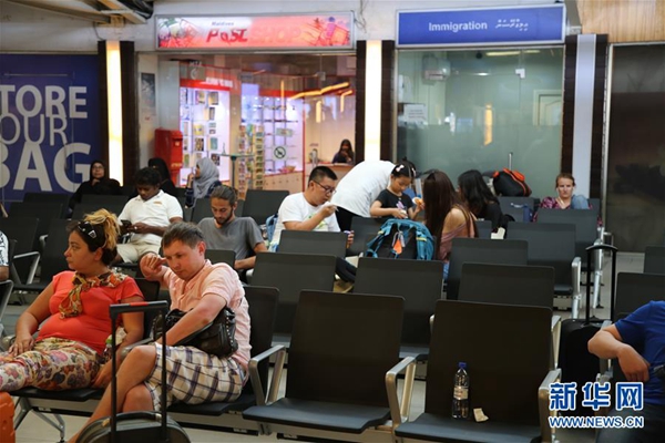 2月7日,在馬爾代夫馬累國際機場,旅客坐在椅子上休息。新華社記者 朱瑞卿 攝