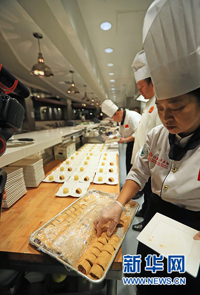 參加活動(dòng)的“中華老字號(hào)”企業(yè)全聚德、東來順的頂級(jí)廚師為現(xiàn)場(chǎng)觀眾展示了蓑衣黃瓜、蒙面刀工等烹飪技巧,龍須拉面細(xì)如發(fā)絲,用打火機(jī)靠近,瞬間呈現(xiàn)出遇火即燃的神奇一幕。中國(guó)廚師們的精湛技藝令來賓贊嘆不已。