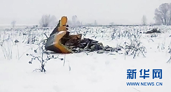 這是2月11日在俄羅斯莫斯科附近拍攝的墜毀客機的殘?。ㄒ曨l截圖)。新華社/美聯(lián)