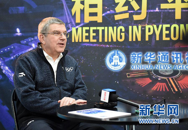 2月12日下午,國(guó)際奧委會(huì)主席巴赫到平昌冬奧會(huì)主新聞中心新華社發(fā)稿中心看望新華社采編人員,并在接受專訪時(shí)現(xiàn)學(xué)中文“春節(jié)快樂(lè)”向中國(guó)人民問(wèn)好。圖為巴赫在演播室接受新華社記者專訪。(2月12日攝) 新華社記者 畢曉洋 攝