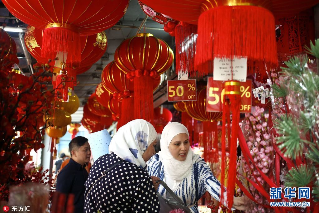當(dāng)?shù)貢r間2018年2月11日,馬來西亞吉隆坡,中國農(nóng)歷新年將至,當(dāng)?shù)啬曦浭袌黾t火。(圖片來源:東方IC)