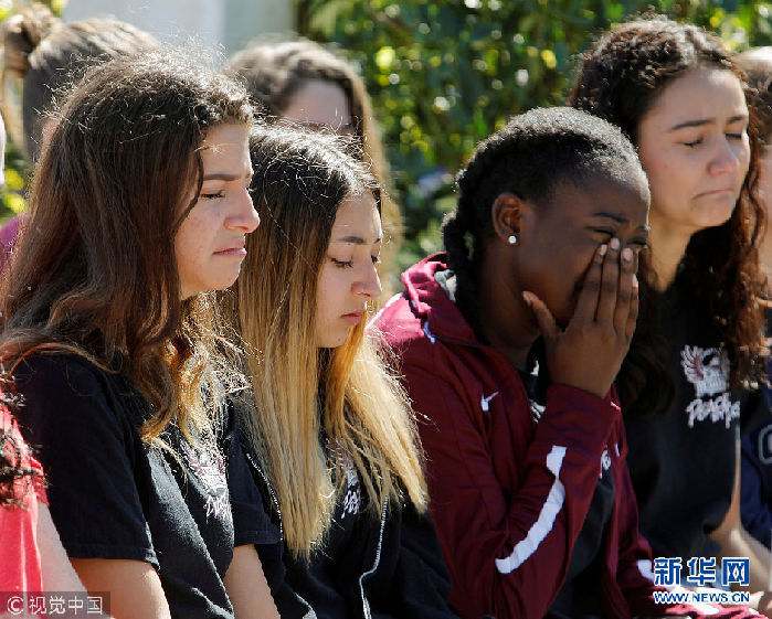 當(dāng)?shù)貢r(shí)間2018年2月15日,美國(guó)佛羅里達(dá)州波姆龐帕諾灘,民眾悼念槍擊案遇難者。當(dāng)?shù)貢r(shí)間14日下午2點(diǎn)25分左右,美國(guó)佛羅里達(dá)州南部帕克蘭一所高中發(fā)生槍擊案,目前已致至少17人死亡,多人受傷。(圖片來(lái)源:視覺(jué)中國(guó))