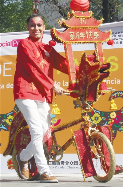 獲得大賽一等獎(jiǎng)的作品是利用廢報(bào)紙?jiān)谧孕熊嚿涎b扮出的巨大“報(bào)紙犬”,狗年元素和綠色出行元素兼而有之,凸顯廢物利用的環(huán)保主題。三人創(chuàng)作團(tuán)隊(duì)中的貝尼托告訴本報(bào)記者,他們經(jīng)營一家以紙板、報(bào)紙、塑料等為原料制作手工藝品的小型公司,這次的作品耗時(shí)兩周。他說:“與去年相比,今年參加比賽的人更多、新點(diǎn)子也更多了,這樣的大型活動(dòng)讓更多墨西哥人對(duì)中國文化產(chǎn)生興趣?!?/p>