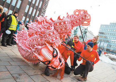 2月15日,第十二屆“歡樂春節(jié)·赫爾辛基廟會(huì)”在芬蘭首都赫爾辛基舉行,吸引大量民眾參加。圖為當(dāng)?shù)厝嗽谖椠?。新華社發(fā)
