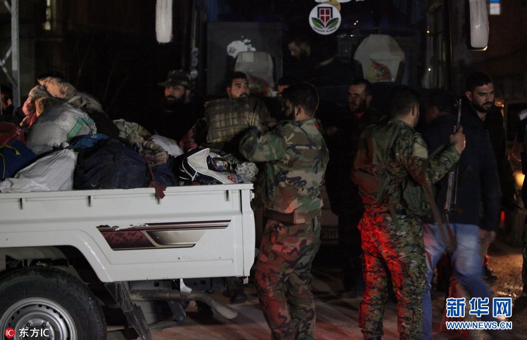 當(dāng)?shù)貢r(shí)間2018年3月9日,敘利亞,首批敘利亞反政府武裝人員從東古塔地區(qū)撤離。(圖片來(lái)源:東方IC)