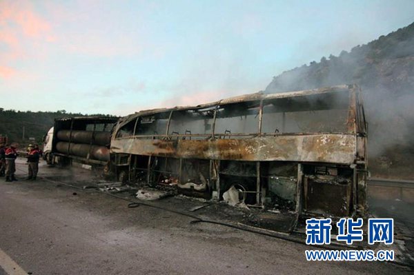 電視臺(tái)現(xiàn)場(chǎng)畫(huà)面顯示,大巴車嚴(yán)重?fù)p毀,只剩焦黑的車架。一位幸存乘客說(shuō),事發(fā)時(shí)車上乘客大多在睡夢(mèng)中。有乘客打碎車窗逃生,未能逃出的乘客則大多遭遇不幸。