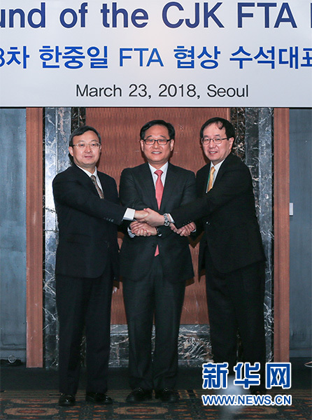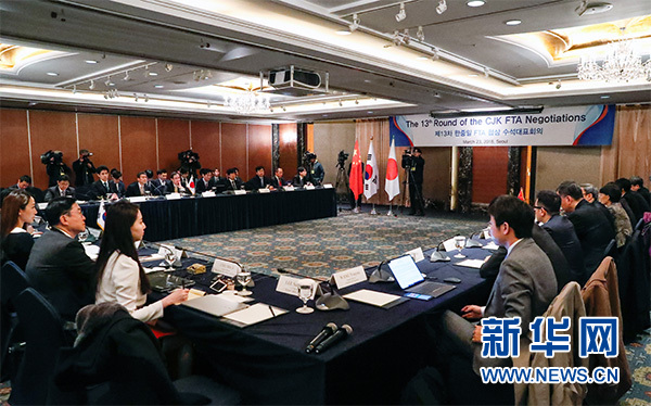 3月23日,中日韓自貿(mào)區(qū)第十三輪談判首席談判代表會(huì)議在韓國首爾舉行。新華社記者 王婧嬙 攝