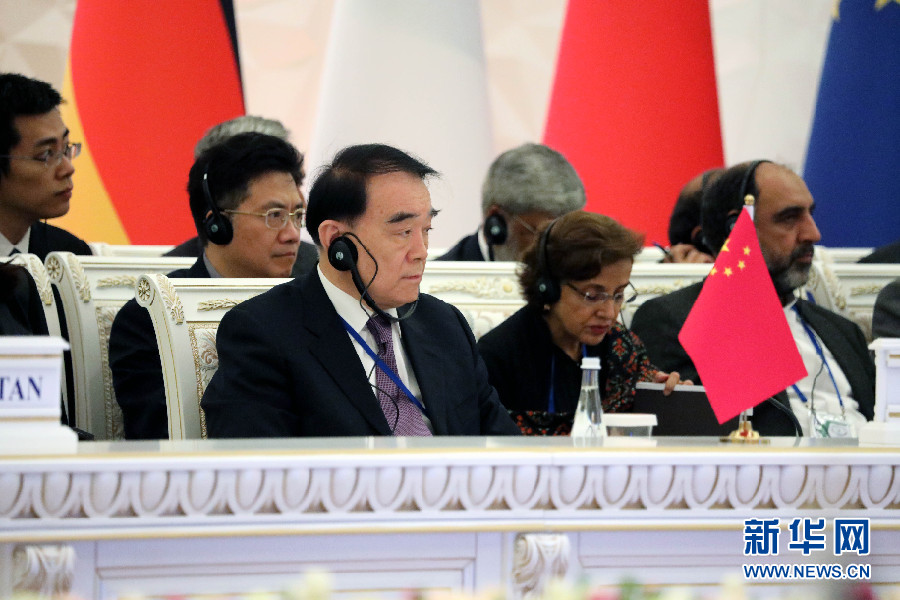 中國外交部副部長李保東(前排左一)率團參加會議。阿富汗問題高級別會議27日在烏茲別克斯坦首都塔什干舉行。新華社記者周良攝