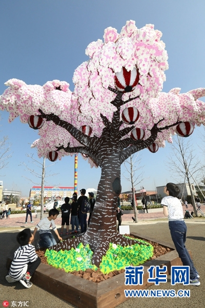 當(dāng)?shù)貢r(shí)間2018年3月28日,日本名古屋,日本樂高樂園主題公園用樂高積木堆出一棵櫻花樹,被吉尼斯世界紀(jì)錄認(rèn)證為世界最高的樂高櫻花樹。(圖片來源:東方IC)