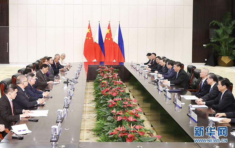 習(xí)近平強(qiáng)調(diào),中國對(duì)菲律賓睦鄰友好政策是堅(jiān)定的,支持菲律賓發(fā)展的意愿是真誠的。中方支持菲律賓政府積極探索適合本國國情的發(fā)展道路。