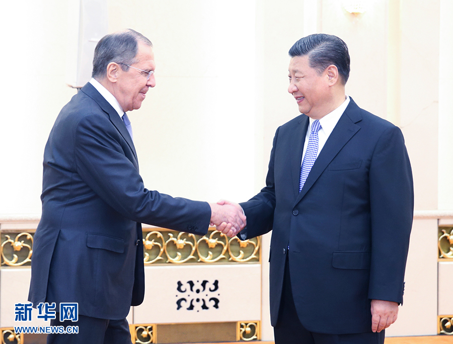 4月23日,國家主席習(xí)近平在北京人民大會(huì)堂會(huì)見俄羅斯外長(zhǎng)拉夫羅夫。 新華社記者 姚大偉 攝