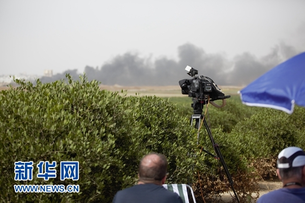 正午的驕陽烤得人大汗淋漓,被大風(fēng)卷起的黃沙一個(gè)勁地往眼睛里鉆。雖然記者的眼睛經(jīng)常被汗水和沙子蹂躪地睜不開,但是這并不妨礙記者用相機(jī)和攝像機(jī)記錄下加沙地帶那一頭發(fā)生的一幕幕??棺h的巴勒斯坦人燃燒輪胎所產(chǎn)生的濃煙,遮住了大片天空,刺鼻的焦味隨風(fēng)飄散。