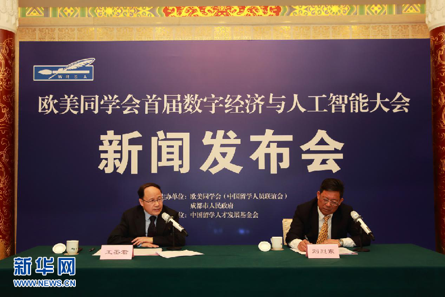 新華網(wǎng)北京4月28日電(郝斐然 王一諾)歐美同學(xué)會首屆“數(shù)字經(jīng)濟(jì)與人工智能”大會新聞發(fā)布會28日在京舉行。歐美同學(xué)會黨組書記、秘書長王丕君和成都市副市長劉烈東介紹大會有關(guān)情況。