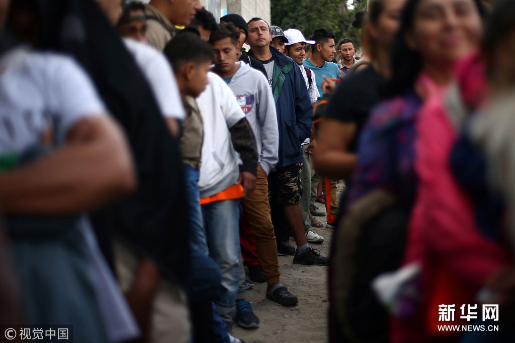 ??? 當(dāng)?shù)貢r(shí)間2018年4月27日,墨西哥提華納,中美洲移民領(lǐng)取早餐。一批中美洲尋求避難人群抵達(dá)墨西哥北部邊陲城市提華納,距離他們的最終目的地——美國(guó)加利福尼亞州僅“一步之遙”。(圖片來(lái)源:視覺(jué)中國(guó))