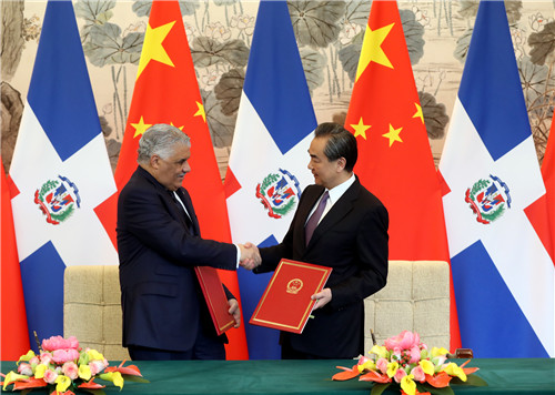新華社北京5月1日電(記者 許可)國務(wù)委員兼外交部長王毅1日上午在北京與多米尼加外長巴爾加斯簽署《中華人民共和國和多米尼加共和國關(guān)于建立外交關(guān)系的聯(lián)合公報(bào)》。自公報(bào)簽署之日起,中華人民共和國和多米尼加共和國相互承認(rèn)并建立大使級(jí)外交關(guān)系。