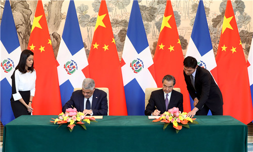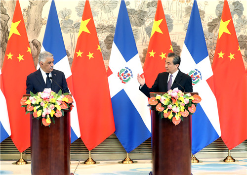 王毅表示,中國和多米尼加正式建交,標志著兩國關系翻開了新的歷史篇章。從此,中國在拉美多了一位守望相助的好朋友,多米尼加在發(fā)展振興道路上有了一位互利合作的好伙伴,中多雙方將成為促進南南合作、維護發(fā)展中國家共同利益的好兄弟。中國特色社會主義進入了新時代,正在加快實現(xiàn)現(xiàn)代化進程。同中國建交,意味著為多米尼加自身發(fā)展帶來前所未有的巨大機遇。隨著雙方合作潛力的不斷釋放,這一機遇將迅速轉化成現(xiàn)實,為1000多萬多米尼加人民持續(xù)帶來實實在在的利益和福祉。多米尼加是中美洲和加勒比地區(qū)最大經濟體,在地區(qū)事務中有著重要影響,中多建交也將為中國和拉美的整體合作注入新的動力,開辟新的空間。