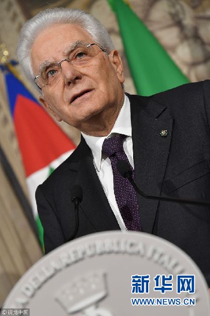 當(dāng)?shù)貢r(shí)間2018年5月7日,意大利羅馬,意大利總統(tǒng)塞爾焦·馬塔雷拉7日召集新一輪組閣談判并出席新聞發(fā)布會(huì)。如果所有組閣努力失敗,馬塔雷拉將授權(quán)組建技術(shù)官僚組成的過渡政府。(圖片來源:視覺中國)