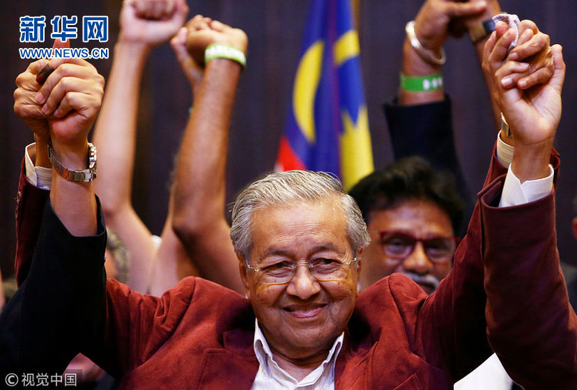 當?shù)貢r間2018年5月9日,馬來西亞吉隆坡,馬哈蒂爾代表希望聯(lián)盟召開新聞發(fā)布會。9日,馬來西亞國會大選結束。10日凌晨官方點票結果顯示,前總理馬哈蒂爾(Mahathir)帶領的希望聯(lián)盟取得112席簡單多數(shù)國會議席,足以籌組政府及勝出大選,并終結執(zhí)政國民陣線長達60年的管治。現(xiàn)總理納吉布領導的國民陣線僅獲得76席。(圖片來源:視覺中國)