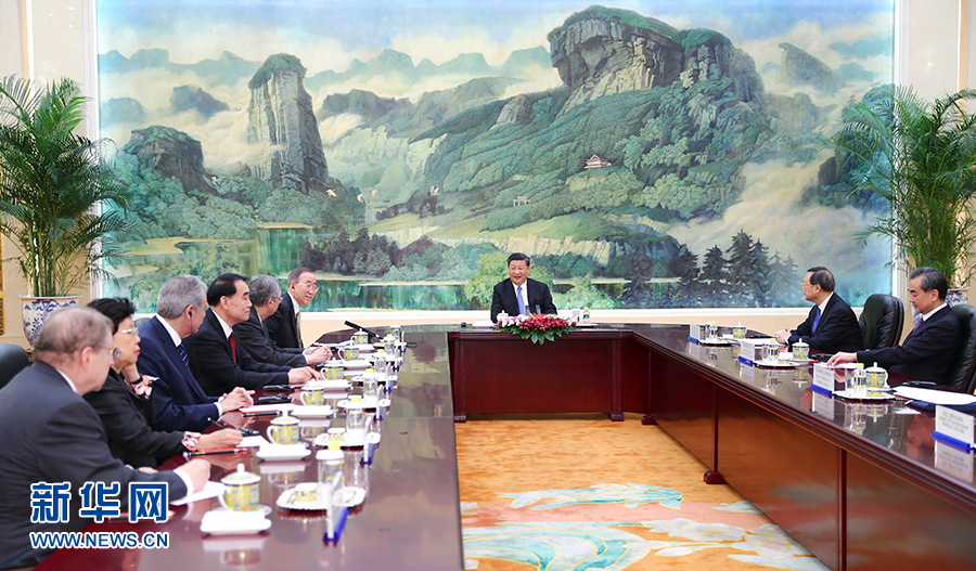 5月15日,國家主席習近平在北京人民大會堂會見博鰲亞洲論壇理事長潘基文。 新華社記者 謝環(huán)馳 攝