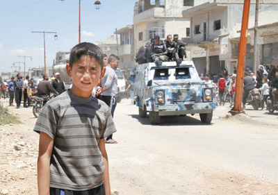5月16日,隨著最后一批反政府武裝人員當天從霍姆斯省北部撤離,敘政府已全面收復(fù)中部省份霍姆斯。圖為當天在霍姆斯省賴斯坦街頭的一名男孩。新華社發(fā)