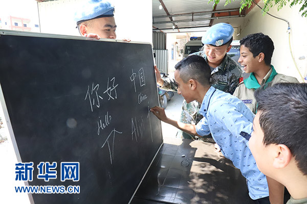 新華社貝魯特6月1日電(桑楊陽 蒙卓霖)“中國,你好!”5月31日,在黎巴嫩南部的曼蘇里村,中國維和官兵正一字一句地教當?shù)貎和瘜W習中文,不時穿插一些互動節(jié)目,引來當?shù)貎和囮囌坡暋?/p>