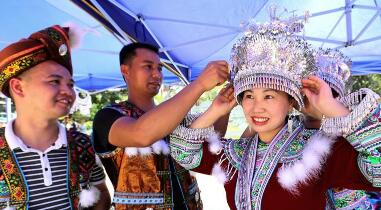 6月8日,在美國(guó)洛杉磯,江玥的父親江勇(前左)和表姐徐翔與媒體見(jiàn)面。新華社發(fā)(趙漢榮攝)