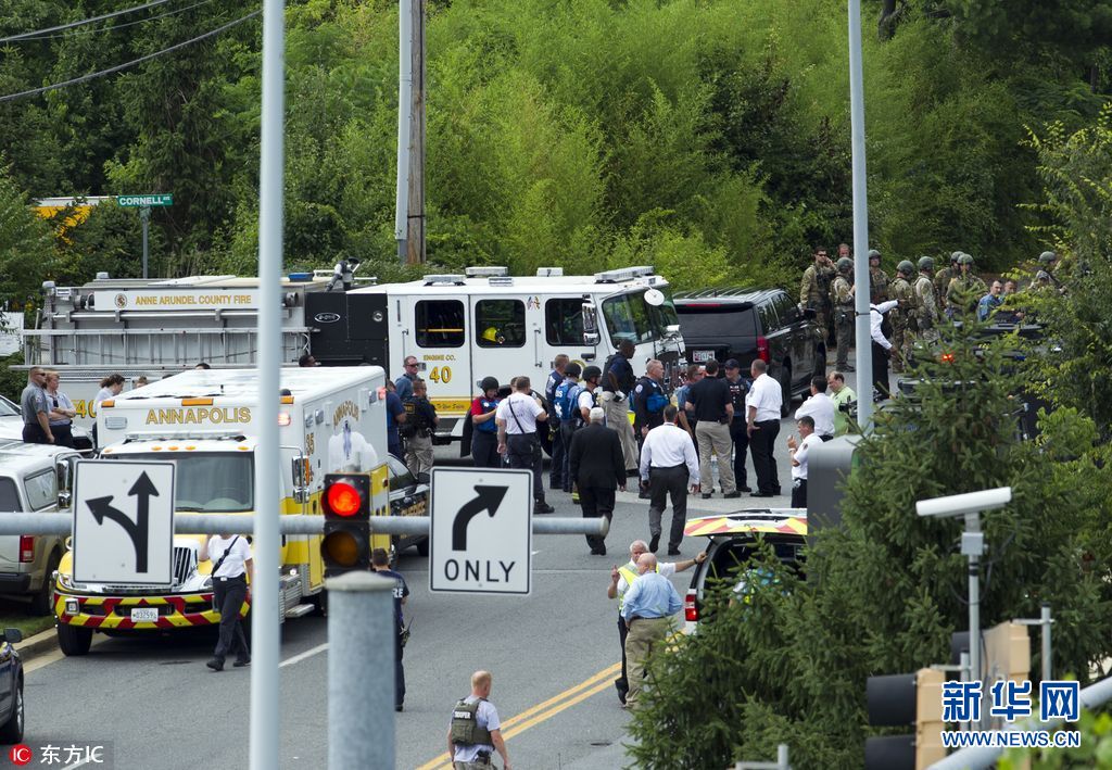 6月28日,美國(guó)馬里蘭州首府安納波利斯,當(dāng)?shù)匾粓?bào)社發(fā)生槍擊。馬里蘭州官員稱,槍擊目前已致5人死亡,多人受傷。(圖片來(lái)源:東方IC)