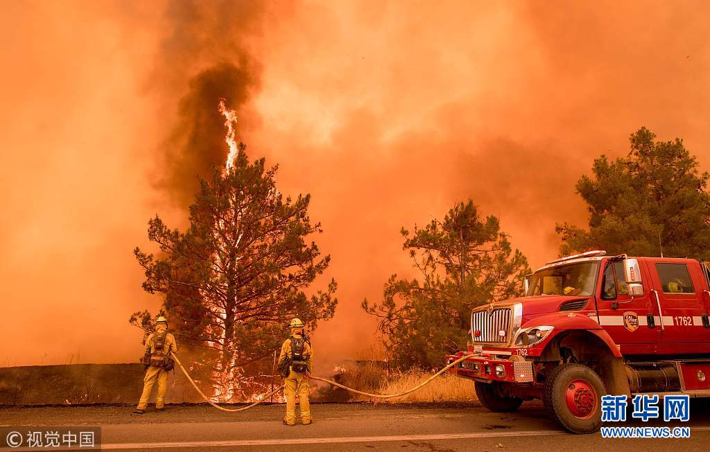 當?shù)貢r間2018年7月1日,美國加州克利爾萊克奧克斯,加州萊克縣“波尼”(Pawnee)大火持續(xù)蔓延,現(xiàn)場烈火熊熊,過火面積達3000英畝(約合12150公頃)。(圖片來源:視覺中國)